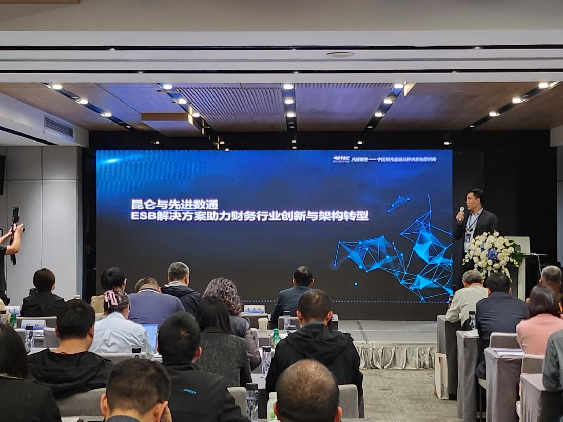 云配查 代表讲师郭钰以《昆仑与云配查 ESB解决方案助力财务行业创新与架构转型》为主题作发言分享。他深入剖析了当前财务行业IT架构面临的挑战,包括系统孤岛、技术老旧、扩展性不足等问题,并提出了基于企业服务总线(ESB)和微服务架构的转型方案。